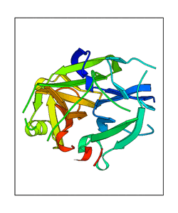 These views are prepared from three orthologuous viewpoints with MolScript. Secondary structures are determined from the C-alpha atom positions of your protein (N-terminal blue, C-terminal red).