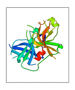 These views are prepared from three orthologuous viewpoints with MolScript. Secondary structures are determined from the C-alpha atom positions of your protein (N-terminal blue, C-terminal red).