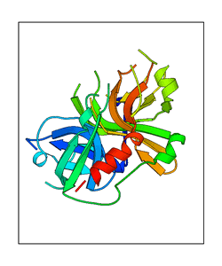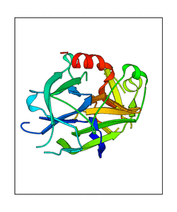 These views are prepared from three orthologuous viewpoints with MolScript. Secondary structures are determined from the C-alpha atom positions of your protein (N-terminal blue, C-terminal red).