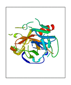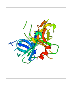 These views are prepared from three orthologuous viewpoints with MolScript. Secondary structures are determined from the C-alpha atom positions of your protein (N-terminal blue, C-terminal red).