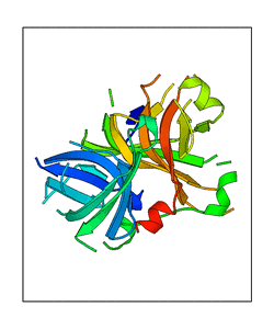 These views are prepared from three orthologuous viewpoints with MolScript. Secondary structures are determined from the C-alpha atom positions of your protein (N-terminal blue, C-terminal red).