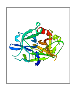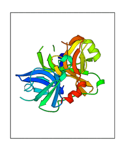 These views are prepared from three orthologuous viewpoints with MolScript. Secondary structures are determined from the C-alpha atom positions of your protein (N-terminal blue, C-terminal red).