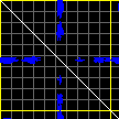 This matrix displays the maximum distance fluctuations between all pairs of CA atoms and between the two extreme conformations that were computed for this mode (DQMIN/DQMAX). Distance increases are plotted in blue and decreases in red for the strongest 10% of the residue pair distance changes. Every pixel corresponds to a single residue. Grey lines are drawn every 10 residues, yellow lines every 100 residues (counting from the upper left corner).