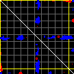 This matrix displays the maximum distance fluctuations between all pairs of CA atoms and between the two extreme conformations that were computed for this mode (DQMIN/DQMAX). Distance increases are plotted in blue and decreases in red for the strongest 10% of the residue pair distance changes. Every pixel corresponds to a single residue. Grey lines are drawn every 10 residues, yellow lines every 100 residues (counting from the upper left corner).