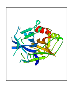 These views are prepared from three orthologuous viewpoints with MolScript. Secondary structures are determined from the C-alpha atom positions of your protein (N-terminal blue, C-terminal red).