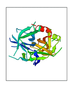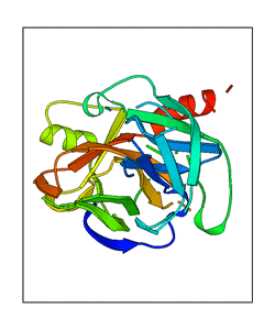 These views are prepared from three orthologuous viewpoints with MolScript. Secondary structures are determined from the C-alpha atom positions of your protein (N-terminal blue, C-terminal red).