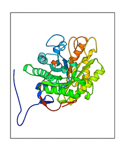 These views are prepared from three orthologuous viewpoints with MolScript. Secondary structures are determined from the C-alpha atom positions of your protein (N-terminal blue, C-terminal red).