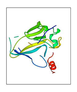 These views are prepared from three orthologuous viewpoints with MolScript. Secondary structures are determined from the C-alpha atom positions of your protein (N-terminal blue, C-terminal red).