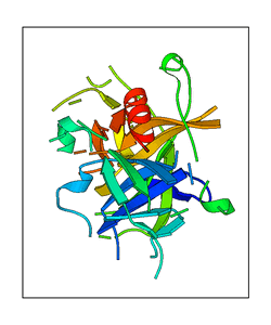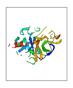 These views are prepared from three orthologuous viewpoints with MolScript. Secondary structures are determined from the C-alpha atom positions of your protein (N-terminal blue, C-terminal red).