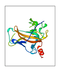 These views are prepared from three orthologuous viewpoints with MolScript. Secondary structures are determined from the C-alpha atom positions of your protein (N-terminal blue, C-terminal red).