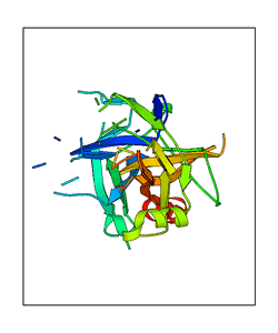 CAUTION: The amplitude range presented in these views corresponds to the highest (DQMAX) and lowest (DQMIN) perturbations chosen for this mode. Secondary structures can break down (and thus disappear from the animation) if the applied amplitudes are too large for Molscript to identify them. The choice of the amplitude is not a NMA result, but has to be done by the user on physical grounds. To change the amplitude range, you can recompute the animation of the desired mode by using the "Compute additional perturbed models with elNémo" section on the results page of your job.