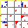 This matrix displays the maximum distance fluctuations between all pairs of CA atoms and between the two extreme conformations that were computed for this mode (DQMIN/DQMAX). Distance increases are plotted in blue and decreases in red for the strongest 10% of the residue pair distance changes. Every pixel corresponds to a single residue. Grey lines are drawn every 10 residues, yellow lines every 100 residues (counting from the upper left corner).