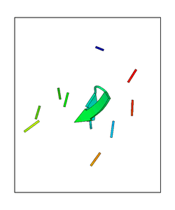 CAUTION: The amplitude range presented in these views corresponds to the highest (DQMAX) and lowest (DQMIN) perturbations chosen for this mode. Secondary structures can break down (and thus disappear from the animation) if the applied amplitudes are too large for Molscript to identify them. The choice of the amplitude is not a NMA result, but has to be done by the user on physical grounds. To change the amplitude range, you can recompute the animation of the desired mode by using the "Compute additional perturbed models with elNémo" section on the results page of your job.