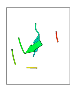 CAUTION: The amplitude range presented in these views corresponds to the highest (DQMAX) and lowest (DQMIN) perturbations chosen for this mode. Secondary structures can break down (and thus disappear from the animation) if the applied amplitudes are too large for Molscript to identify them. The choice of the amplitude is not a NMA result, but has to be done by the user on physical grounds. To change the amplitude range, you can recompute the animation of the desired mode by using the "Compute additional perturbed models with elNémo" section on the results page of your job.