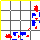 This matrix displays the maximum distance fluctuations between all pairs of CA atoms and between the two extreme conformations that were computed for this mode (DQMIN/DQMAX). Distance increases are plotted in blue and decreases in red for the strongest 10% of the residue pair distance changes. Every pixel corresponds to a single residue. Grey lines are drawn every 10 residues, yellow lines every 100 residues (counting from the upper left corner).