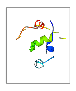 These views are prepared from three orthologuous viewpoints with MolScript. Secondary structures are determined from the C-alpha atom positions of your protein (N-terminal blue, C-terminal red).