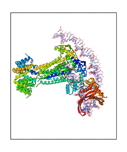 CAUTION: The amplitude range presented in these views corresponds to the highest (DQMAX) and lowest (DQMIN) perturbations chosen for this mode. Secondary structures can break down (and thus disappear from the animation) if the applied amplitudes are too large for Molscript to identify them. The choice of the amplitude is not a NMA result, but has to be done by the user on physical grounds. To change the amplitude range, you can recompute the animation of the desired mode by using the "Compute additional perturbed models with elNémo" section on the results page of your job.