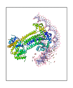 CAUTION: The amplitude range presented in these views corresponds to the highest (DQMAX) and lowest (DQMIN) perturbations chosen for this mode. Secondary structures can break down (and thus disappear from the animation) if the applied amplitudes are too large for Molscript to identify them. The choice of the amplitude is not a NMA result, but has to be done by the user on physical grounds. To change the amplitude range, you can recompute the animation of the desired mode by using the "Compute additional perturbed models with elNémo" section on the results page of your job.