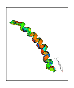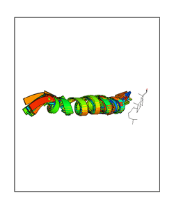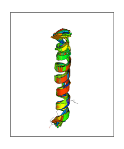 CAUTION: The amplitude range presented in these views corresponds to the highest (DQMAX) and lowest (DQMIN) perturbations chosen for this mode. Secondary structures can break down (and thus disappear from the animation) if the applied amplitudes are too large for Molscript to identify them. The choice of the amplitude is not a NMA result, but has to be done by the user on physical grounds. To change the amplitude range, you can recompute the animation of the desired mode by using the "Compute additional perturbed models with elNémo" section on the results page of your job.