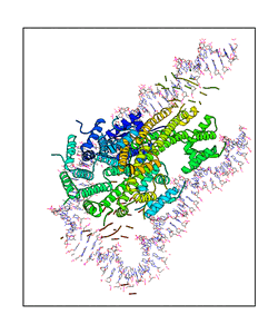 CAUTION: The amplitude range presented in these views corresponds to the highest (DQMAX) and lowest (DQMIN) perturbations chosen for this mode. Secondary structures can break down (and thus disappear from the animation) if the applied amplitudes are too large for Molscript to identify them. The choice of the amplitude is not a NMA result, but has to be done by the user on physical grounds. To change the amplitude range, you can recompute the animation of the desired mode by using the "Compute additional perturbed models with elNémo" section on the results page of your job.