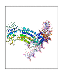 CAUTION: The amplitude range presented in these views corresponds to the highest (DQMAX) and lowest (DQMIN) perturbations chosen for this mode. Secondary structures can break down (and thus disappear from the animation) if the applied amplitudes are too large for Molscript to identify them. The choice of the amplitude is not a NMA result, but has to be done by the user on physical grounds. To change the amplitude range, you can recompute the animation of the desired mode by using the "Compute additional perturbed models with elNémo" section on the results page of your job.