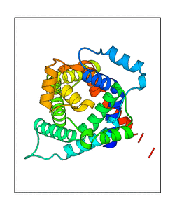 These views are prepared from three orthologuous viewpoints with MolScript. Secondary structures are determined from the C-alpha atom positions of your protein (N-terminal blue, C-terminal red).
