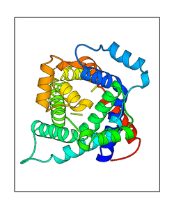 These views are prepared from three orthologuous viewpoints with MolScript. Secondary structures are determined from the C-alpha atom positions of your protein (N-terminal blue, C-terminal red).