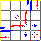 This matrix displays the maximum distance fluctuations between all pairs of CA atoms and between the two extreme conformations that were computed for this mode (DQMIN/DQMAX). Distance increases are plotted in blue and decreases in red for the strongest 10% of the residue pair distance changes. Every pixel corresponds to a single residue. Grey lines are drawn every 10 residues, yellow lines every 100 residues (counting from the upper left corner).