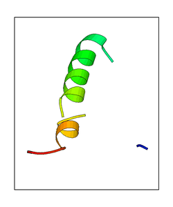 These views are prepared from three orthologuous viewpoints with MolScript. Secondary structures are determined from the C-alpha atom positions of your protein (N-terminal blue, C-terminal red).