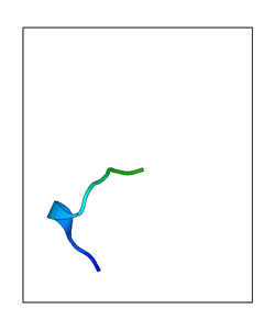 CAUTION: The amplitude range presented in these views corresponds to the highest (DQMAX) and lowest (DQMIN) perturbations chosen for this mode. Secondary structures can break down (and thus disappear from the animation) if the applied amplitudes are too large for Molscript to identify them. The choice of the amplitude is not a NMA result, but has to be done by the user on physical grounds. To change the amplitude range, you can recompute the animation of the desired mode by using the "Compute additional perturbed models with elNémo" section on the results page of your job.