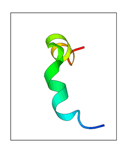 These views are prepared from three orthologuous viewpoints with MolScript. Secondary structures are determined from the C-alpha atom positions of your protein (N-terminal blue, C-terminal red).
