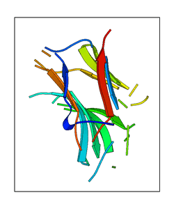CAUTION: The amplitude range presented in these views corresponds to the highest (DQMAX) and lowest (DQMIN) perturbations chosen for this mode. Secondary structures can break down (and thus disappear from the animation) if the applied amplitudes are too large for Molscript to identify them. The choice of the amplitude is not a NMA result, but has to be done by the user on physical grounds. To change the amplitude range, you can recompute the animation of the desired mode by using the "Compute additional perturbed models with elNémo" section on the results page of your job.