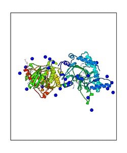 CAUTION: The amplitude range presented in these views corresponds to the highest (DQMAX) and lowest (DQMIN) perturbations chosen for this mode. Secondary structures can break down (and thus disappear from the animation) if the applied amplitudes are too large for Molscript to identify them. The choice of the amplitude is not a NMA result, but has to be done by the user on physical grounds. To change the amplitude range, you can recompute the animation of the desired mode by using the "Compute additional perturbed models with elNémo" section on the results page of your job.