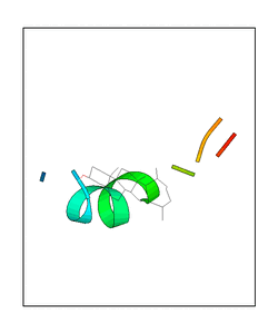 CAUTION: The amplitude range presented in these views corresponds to the highest (DQMAX) and lowest (DQMIN) perturbations chosen for this mode. Secondary structures can break down (and thus disappear from the animation) if the applied amplitudes are too large for Molscript to identify them. The choice of the amplitude is not a NMA result, but has to be done by the user on physical grounds. To change the amplitude range, you can recompute the animation of the desired mode by using the "Compute additional perturbed models with elNémo" section on the results page of your job.