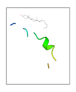 These views are prepared from three orthologuous viewpoints with MolScript. Secondary structures are determined from the C-alpha atom positions of your protein (N-terminal blue, C-terminal red).