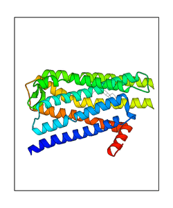 These views are prepared from three orthologuous viewpoints with MolScript. Secondary structures are determined from the C-alpha atom positions of your protein (N-terminal blue, C-terminal red).