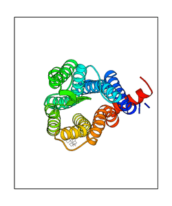 These views are prepared from three orthologuous viewpoints with MolScript. Secondary structures are determined from the C-alpha atom positions of your protein (N-terminal blue, C-terminal red).