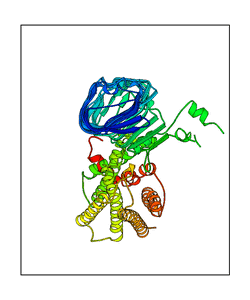 CAUTION: The amplitude range presented in these views corresponds to the highest (DQMAX) and lowest (DQMIN) perturbations chosen for this mode. Secondary structures can break down (and thus disappear from the animation) if the applied amplitudes are too large for Molscript to identify them. The choice of the amplitude is not a NMA result, but has to be done by the user on physical grounds. To change the amplitude range, you can recompute the animation of the desired mode by using the "Compute additional perturbed models with elNémo" section on the results page of your job.