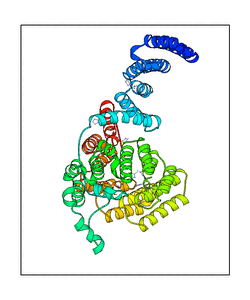 CAUTION: The amplitude range presented in these views corresponds to the highest (DQMAX) and lowest (DQMIN) perturbations chosen for this mode. Secondary structures can break down (and thus disappear from the animation) if the applied amplitudes are too large for Molscript to identify them. The choice of the amplitude is not a NMA result, but has to be done by the user on physical grounds. To change the amplitude range, you can recompute the animation of the desired mode by using the "Compute additional perturbed models with elNémo" section on the results page of your job.
