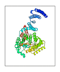 CAUTION: The amplitude range presented in these views corresponds to the highest (DQMAX) and lowest (DQMIN) perturbations chosen for this mode. Secondary structures can break down (and thus disappear from the animation) if the applied amplitudes are too large for Molscript to identify them. The choice of the amplitude is not a NMA result, but has to be done by the user on physical grounds. To change the amplitude range, you can recompute the animation of the desired mode by using the "Compute additional perturbed models with elNémo" section on the results page of your job.