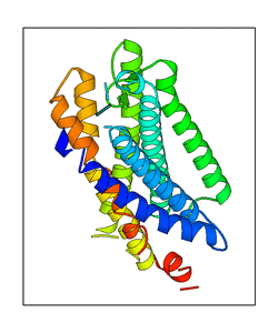 These views are prepared from three orthologuous viewpoints with MolScript. Secondary structures are determined from the C-alpha atom positions of your protein (N-terminal blue, C-terminal red).