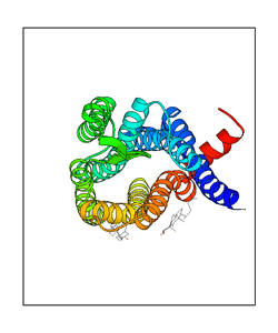 These views are prepared from three orthologuous viewpoints with MolScript. Secondary structures are determined from the C-alpha atom positions of your protein (N-terminal blue, C-terminal red).