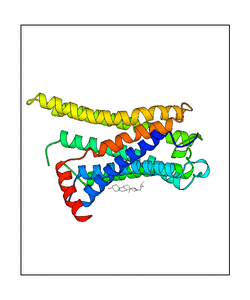 These views are prepared from three orthologuous viewpoints with MolScript. Secondary structures are determined from the C-alpha atom positions of your protein (N-terminal blue, C-terminal red).