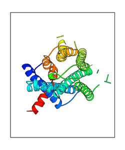 CAUTION: The amplitude range presented in these views corresponds to the highest (DQMAX) and lowest (DQMIN) perturbations chosen for this mode. Secondary structures can break down (and thus disappear from the animation) if the applied amplitudes are too large for Molscript to identify them. The choice of the amplitude is not a NMA result, but has to be done by the user on physical grounds. To change the amplitude range, you can recompute the animation of the desired mode by using the "Compute additional perturbed models with elNémo" section on the results page of your job.