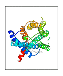 These views are prepared from three orthologuous viewpoints with MolScript. Secondary structures are determined from the C-alpha atom positions of your protein (N-terminal blue, C-terminal red).