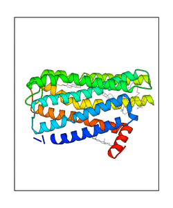 These views are prepared from three orthologuous viewpoints with MolScript. Secondary structures are determined from the C-alpha atom positions of your protein (N-terminal blue, C-terminal red).