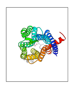 These views are prepared from three orthologuous viewpoints with MolScript. Secondary structures are determined from the C-alpha atom positions of your protein (N-terminal blue, C-terminal red).