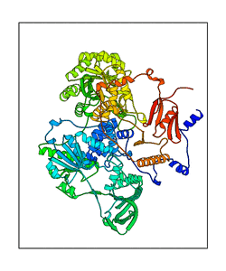 These views are prepared from three orthologuous viewpoints with MolScript. Secondary structures are determined from the C-alpha atom positions of your protein (N-terminal blue, C-terminal red).