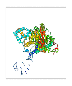 CAUTION: The amplitude range presented in these views corresponds to the highest (DQMAX) and lowest (DQMIN) perturbations chosen for this mode. Secondary structures can break down (and thus disappear from the animation) if the applied amplitudes are too large for Molscript to identify them. The choice of the amplitude is not a NMA result, but has to be done by the user on physical grounds. To change the amplitude range, you can recompute the animation of the desired mode by using the "Compute additional perturbed models with elNémo" section on the results page of your job.