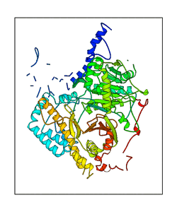These views are prepared from three orthologuous viewpoints with MolScript. Secondary structures are determined from the C-alpha atom positions of your protein (N-terminal blue, C-terminal red).